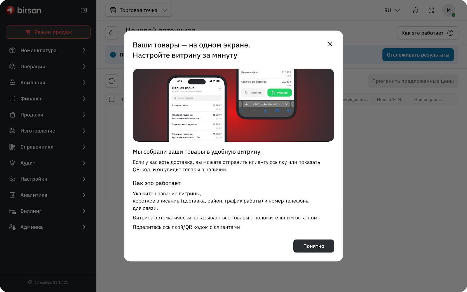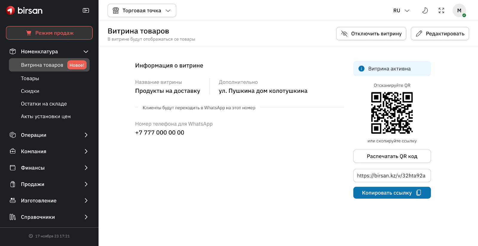 Если вы устали каждый день фотографировать ассортимент для соседских чатов или хотите начать принимать заказы через мессенджеры, в Birsan появилось простое решение. Сформируйте свою постоянную ссылку или QR-код на товары — и отправляйте клиентам вместо десятков фотографий.