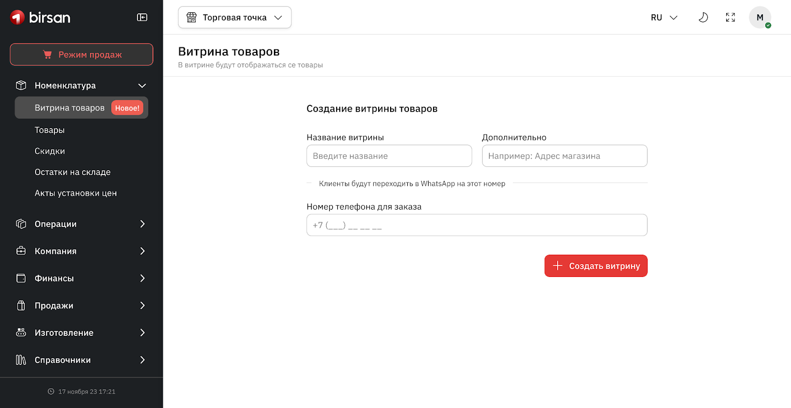 5. Нажмите кнопку «Создать витрину». Система сгенерирует уникальную страницу с вашими товарами.