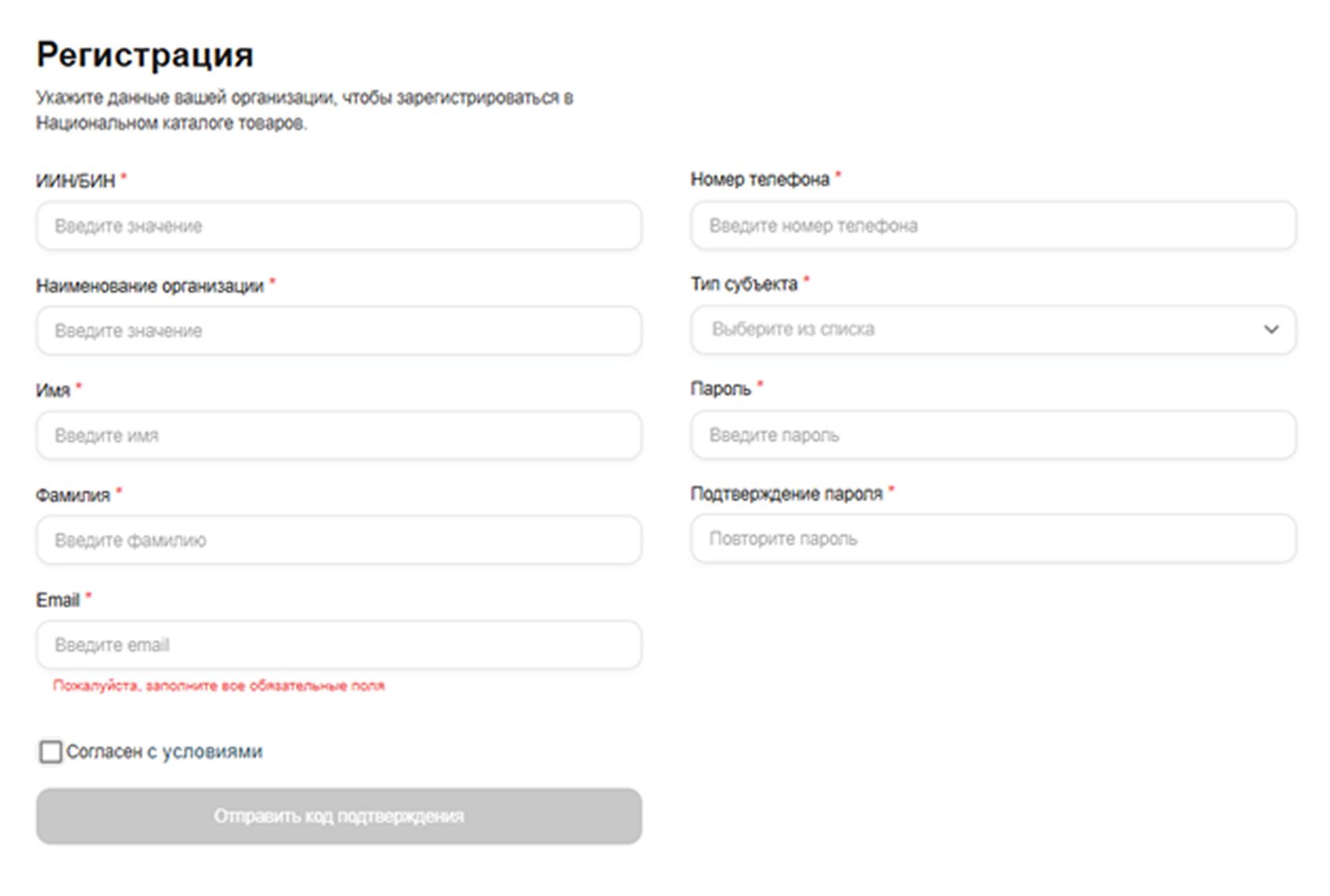 - Перейдите на nationalcatalog.kz (stg.nct.kz, используется только для пробных загрузок).